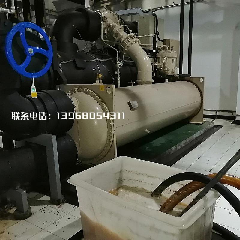 这里值得提出的是不停机中清洗在机组正常运转的状态下把中性清洗剂加入冷却水、冷冻水系统循环清洗30天左右把清洗液放出,加上保剂清洗过程结束。此方案清洗时间比较长,但是可以在机组正常运行状态下进行,而且不会影响冷凝器清洗机组正常运行。