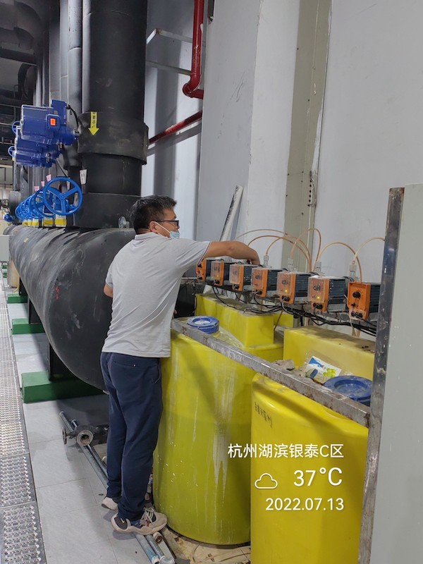 循环水处理比中央空调清洗等更难更专业,需要大家很好的了解下。这不,我们近期在杭州银泰商城处理特灵主机的处理。让我们来看看。